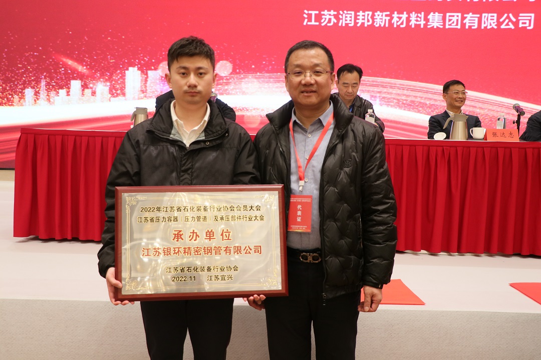 2月23日-24日,江苏省石化装备行业协会会员大会暨江苏省压力容器(压力管道)及承压部件行业大会在宜兴隆重召开。本次大会由江苏银环精密钢管有限公司承办,行业专家、协会领导、设备制造单位、材料供应商、配套企业等相关单位负责人近三百人参会。宜兴市副市长张达志应邀出席。