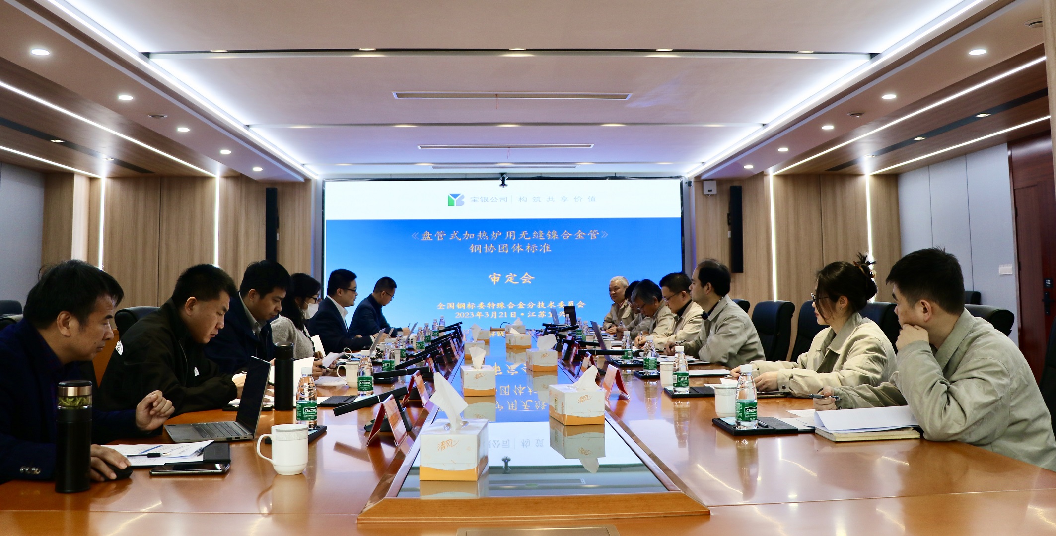 3月21日,由江苏银环精密钢管有限公司主持起草的钢协团体标准《盘管式加热炉用镍基合金无缝管》审定会在江苏宜兴顺利召开。参加会议的有来自冶金工业信息标准化研究院、东方电气集团东方锅炉股份有限公司、哈尔滨锅炉厂有限责任公司、江苏大学、永兴特种材料科技股份有限公司等生产企业、科研院所及用户共6个单位的17位代表。公司副总经理吴青松、副总工程师韩敏、技术中心主任高佩、技术管理部部长王锋、首席材料专家华杨康等出席会议。