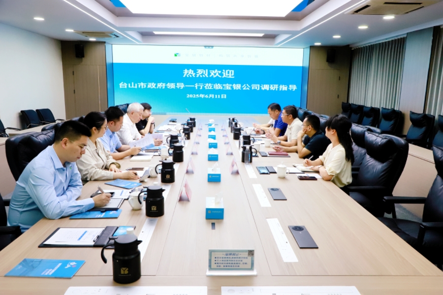 6月11日,台山市委副书记、市长吴楷钊一行赴宝银特材科技股份有限公司开展专题调研,台山市政府办公室主任余睿敏、台山市工业新城管委会主任容志坚、台山市招商局局长谭绮虹、台山市工业新城管委会副主任戴敏陪同调研。宝银公司创始人、党委书记、总经理庄建新,董事、副总经理庄卓俊,副总经理陈彦,副总经理唐玉春,党委副书记、总经理助理汤凤萍,营销中心副总经理、办公室主任张缘龙等参加接待。