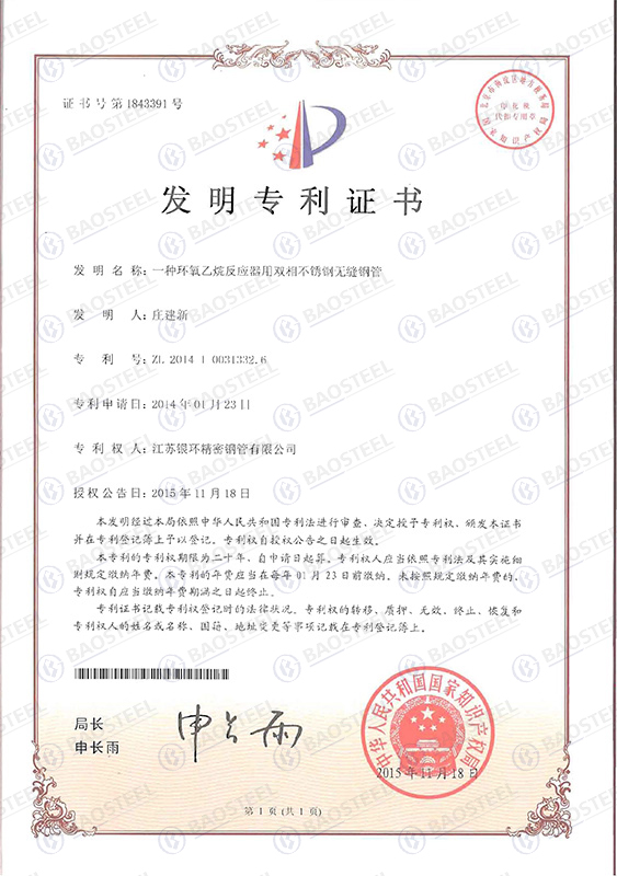 A duplex stainless steel seamless steel tube for ethylene oxide reactor -