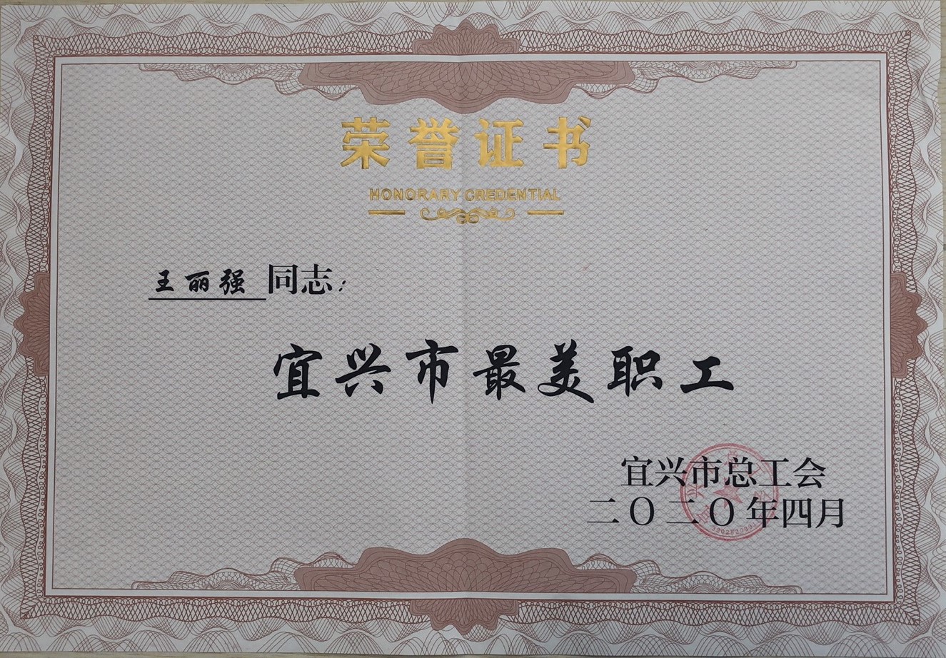 宝银公司王丽强荣获“宜兴市最美职工”称号