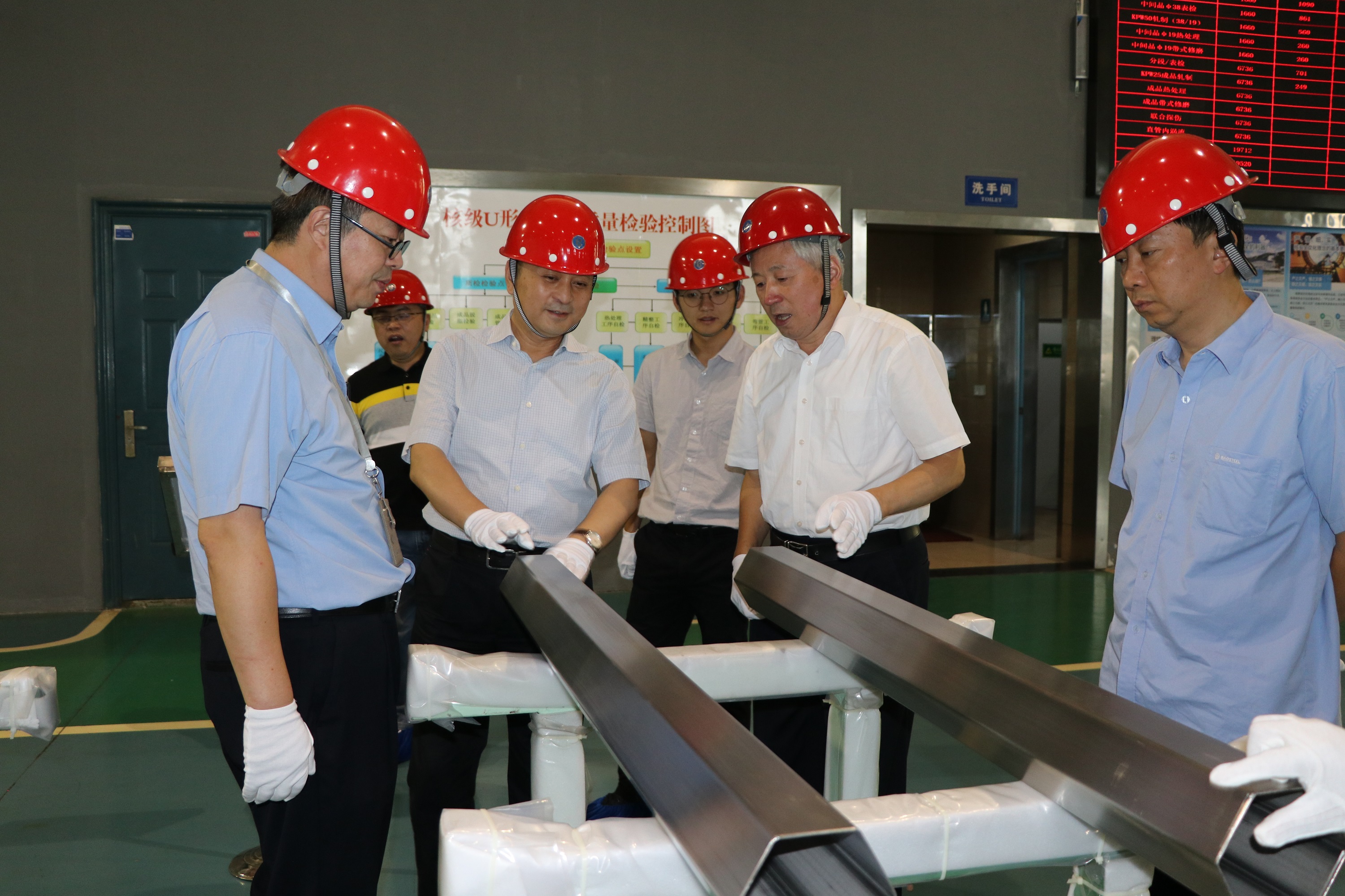 郑董事长一行参观了公司科技创新成果展示厅,听取了企业创始人庄董关于公司历史沿革和创新发展历程的详细介绍;视察了国内首条核电蒸发器用690U形管专业生产线,该生产线被院士专家组誉为“国宝级”产线,实现了从“原料冶炼、管材研制、工程应用”的技术质量一贯制管理,保证了整个产业链的自主可控和有效运行。