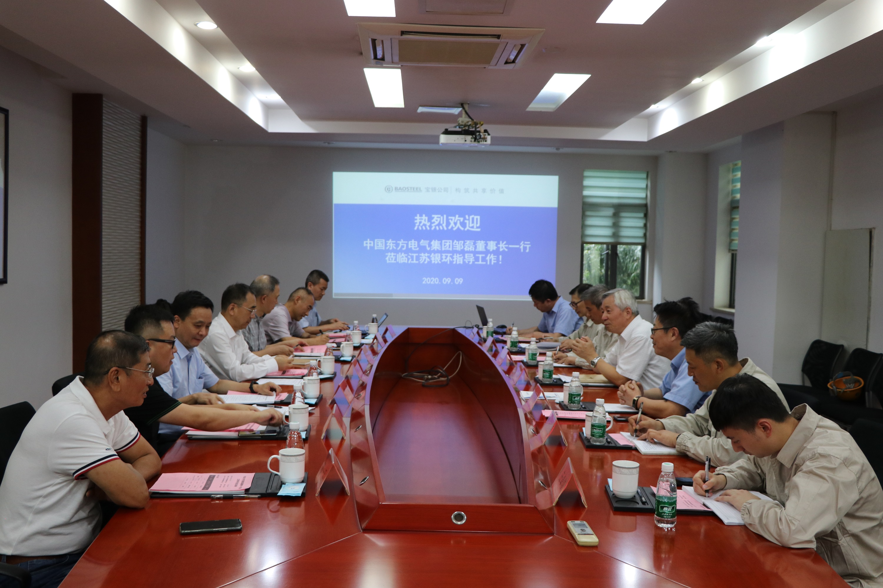 9月9日,中国东方电气集团党组书记、董事长邹磊,东方电气股份副总裁高峰,东方重机总经理但军,东方电气股份核能事业部副总经理王国鸿,中国东方电气集团党组机要秘书王辉,东方重机采购部副部长冯浩等一行调研江苏银环。宜兴市委书记沈建,宜兴市委常委、宜兴经济技术开发区党工委副书记、管委会副主任裴焕良,宜兴市委办公室主任任飞,江苏银环创始人、党委书记、董事长庄建新,总经理朱海涛,副总经理唐玉春、汤国振,总工程师李宏,总经理助理庄卓俊等陪同接待。