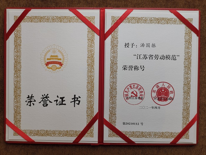 宝银公司汤国振荣获 “江苏省劳动模范”荣誉称号