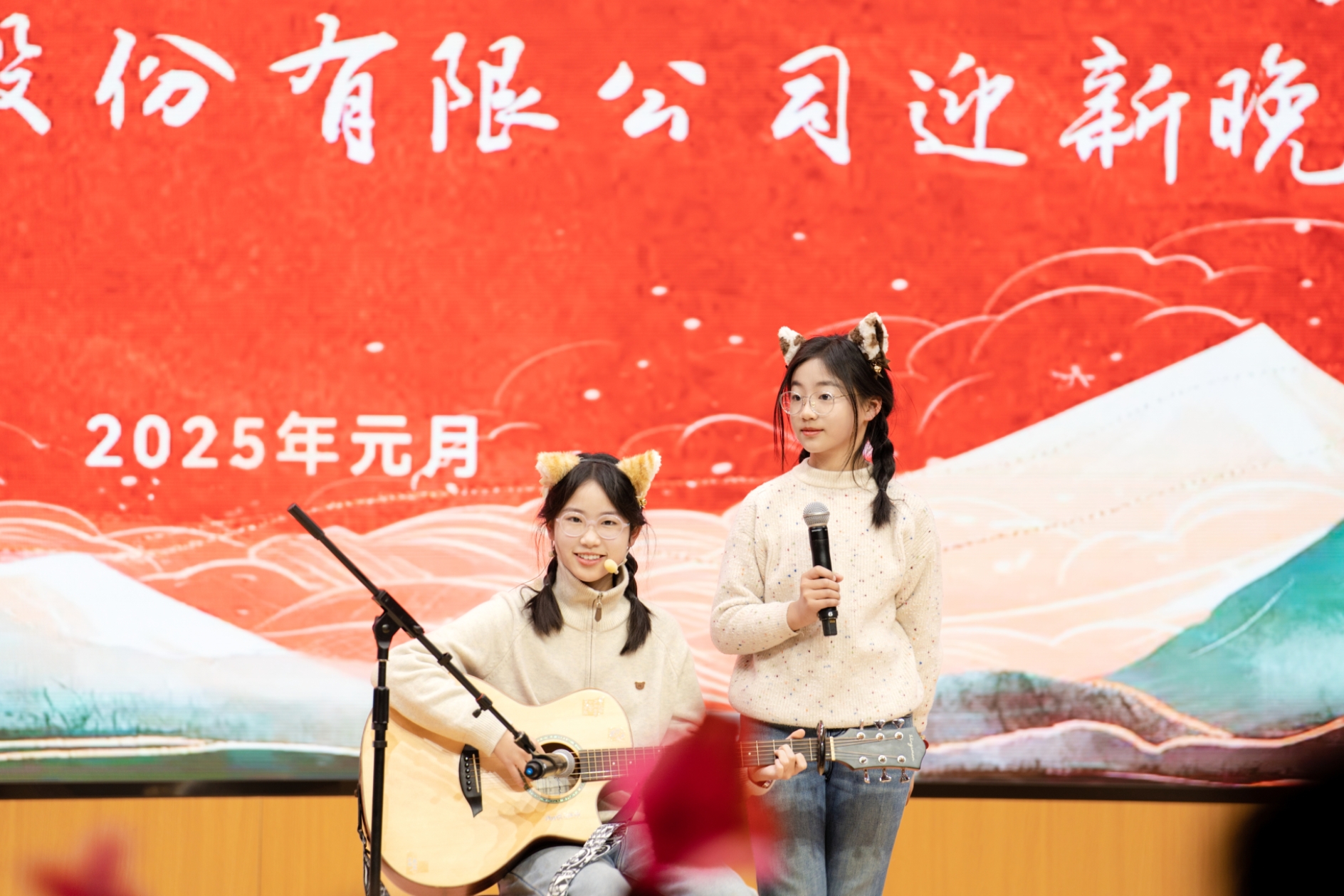 随后,晚会进入了精彩纷呈的节目表演环节。一曲气势磅礴的《大中国》瞬间燃爆全场,随后《寄明月》、《花亦山》舞蹈更是充分展现了公司青年人的多才多艺,力量与柔美结合,迎来台下阵阵掌声,《激光舞》则用炫酷的舞台敲响宝银向新的鼓声。在《我要当“卷”王》的相声演员与台观众的互动中,“卷王”身份收获了一致认同。优秀的宝银人培养出优秀的“宝银二代”,古筝、吉他、二胡、童谣,为我们带来了不一样的舞台,一张张稚嫩的面庞为大家呈现出优质的表演。