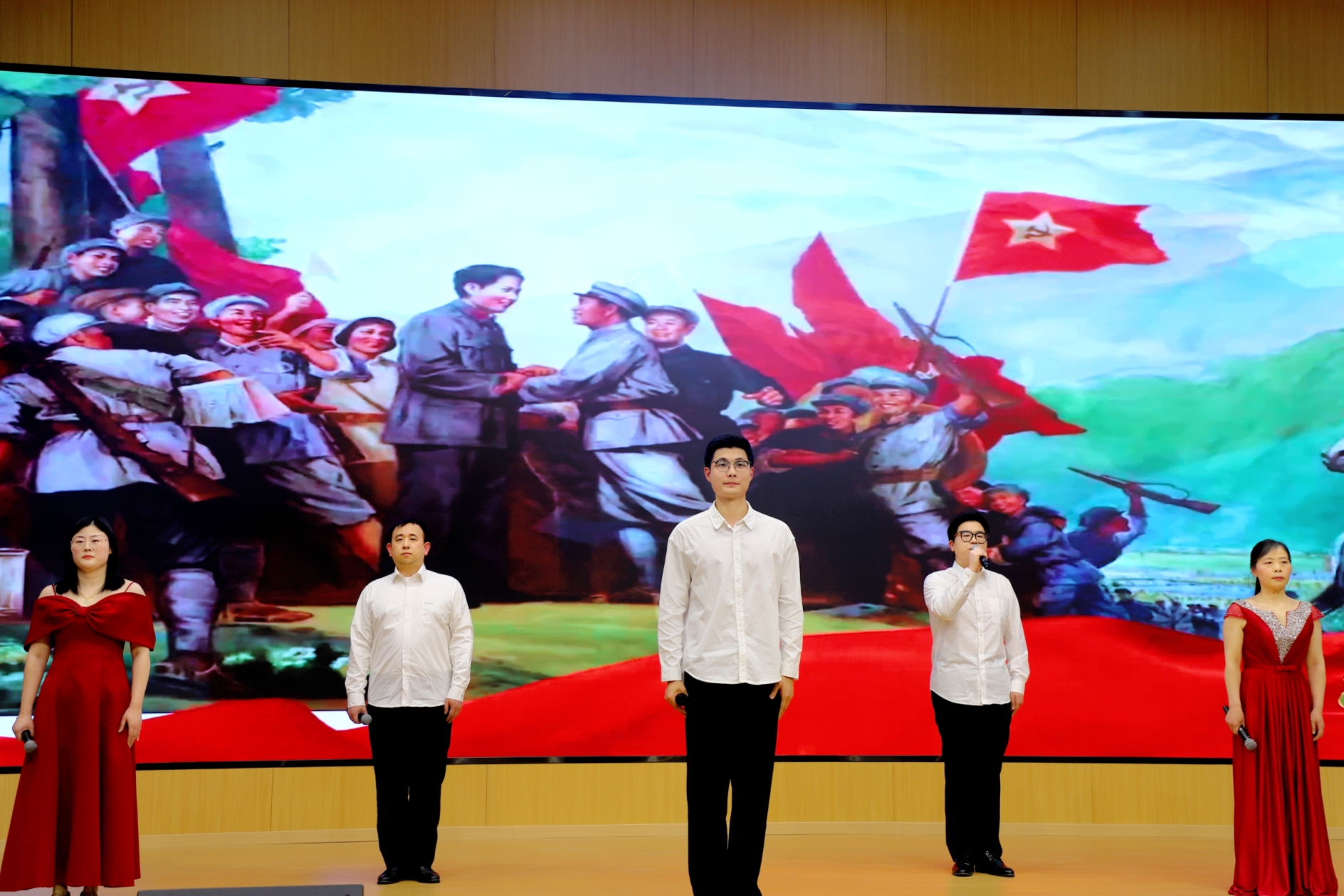 伴随着《风吹麦浪》、《我是真的爱上你》、《半壶纱》悠扬的旋律,观众们挥动着手中的荧光棒,沉浸其中。《核电城墙》朗诵更是传递出宝银人坚定的信念与追求。一曲《精忠报国》点燃了大家报国赤子心,《浮光》将独唱与朗诵相结合,用声音诉说历史,传递出跨越时空的旋律,《“声”生不息的红色旋律》用宣讲与合唱,在大家的心中深深“烙下”时代的红色印记。更有跨越数千里的广州公司同事来到现场,为我们表演《脱口秀》,赢得台下阵阵叫好。
