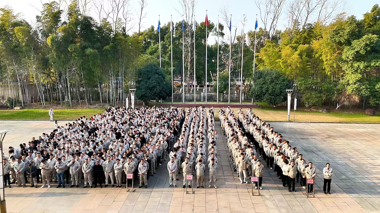 公司创始人、党委书记、总经理庄建新发表新春动员讲话,公司经营班子成员以及各部门、分厂一千多名员工参加此次大会。副总经理汤国振主持大会。